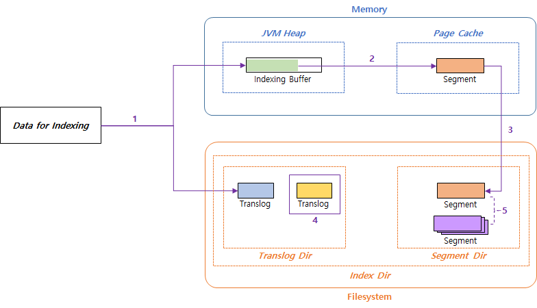 - 또한 색인을 위한 Data는 Log형태(Index Operation)로 Translog 파일에 기록