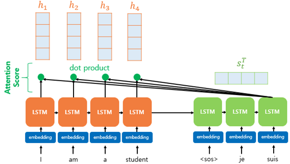 모든 Input hidden state에 대하여 아래와 같이 내적하여 값을 구함