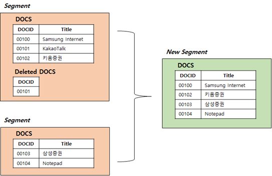 Merge를 통하여 세그먼트들의 수를 줄이고 삭제된 문서들 또한 세그먼트에서 실질적인 제거가 가능함