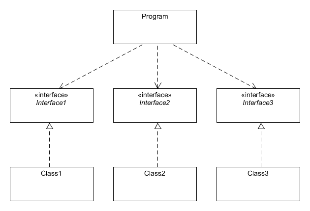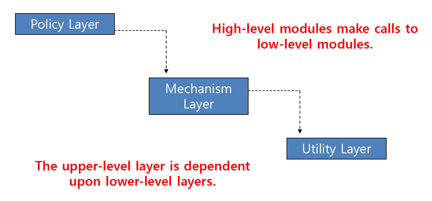 Client라고 할 수 있는 upper level layer가 interface를 가져서 lower-level layer는 interface를 갖고 있지 않게 된다.
