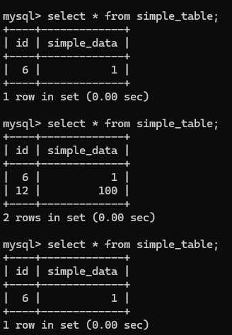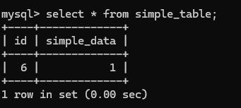 INSERT INTO simple_table VALUES (1, 20);