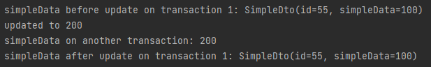System.out.println("simpleData after update on transaction 1: " + findByIdUsingEm(id));